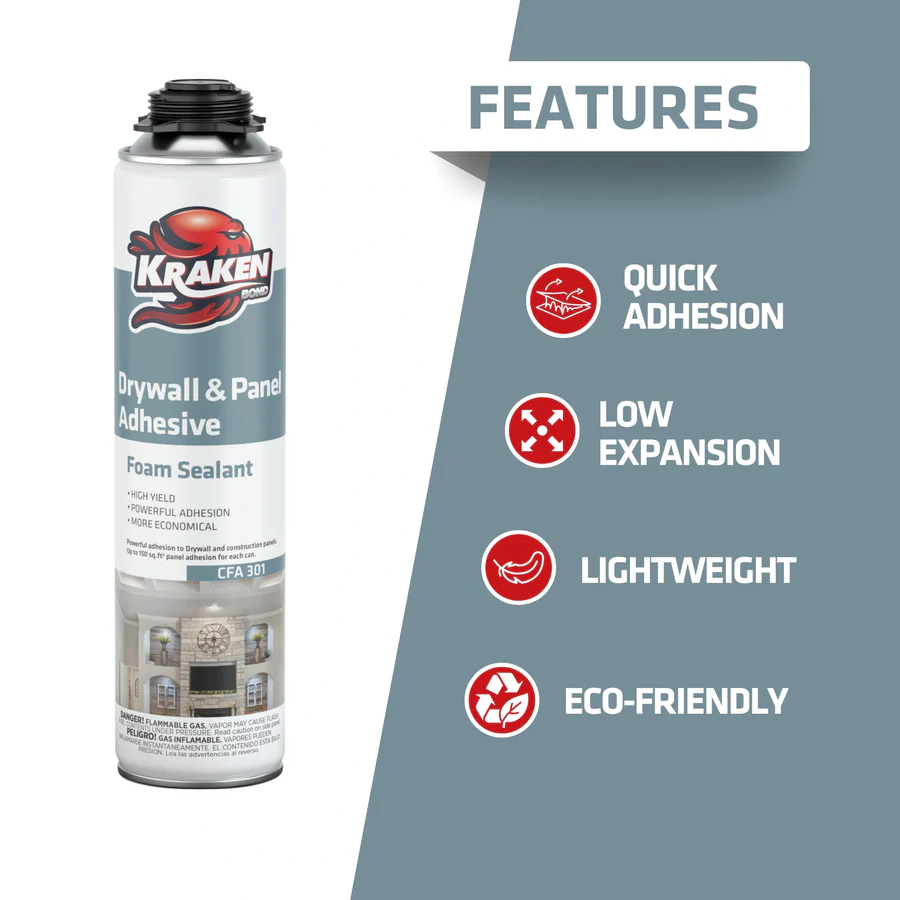 Foam Subfloor Adhesive: Ideal for attaching insulation and flooring materials.
