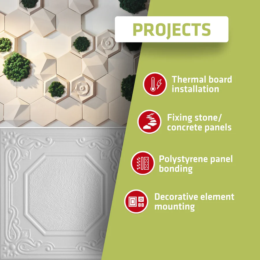 • Mounting insulation and finishing boards, especially thermal insulation materials (e.g., XPS, EPS).