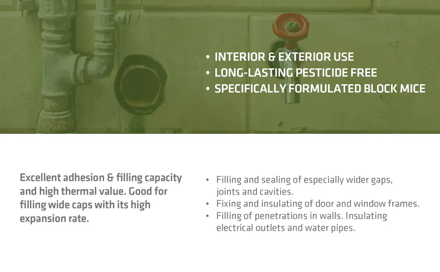 PestSafe Foam Sealant is a powerful, easy-to-use pest block spray foam that creates a strong barrier against mice, rats, insects, and other unwanted intruders. Formulated with an EPA-registered pesticide, this foam sealant for mice expands to fill and seal entry points, providing long-lasting rodent control in residential and commercial environments. Its ready-to-use straw applicator ensures precise application in tight or hard-to-reach spaces.